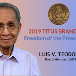 CMFR TRUSTEE Luis V. Teodoro will receive this year’s Titus Brandsma Freedom of the Press award. Luis V. Teodoro is recognized for being “a journalist, editor, and journalism educator... Read more