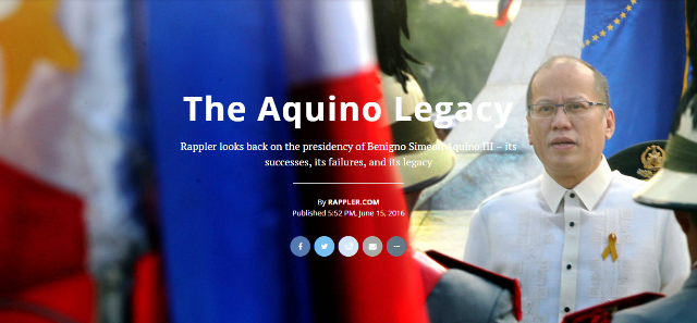 CHEERS TO Rappler for running pieces that looked back on the term of outgoing President Benigno Aquino III. On June 15, Rappler posted âThe Aquino Legacy,” which recalled events during Aquinoâs term, including âits successes, its failures, and its legacy.â The special page hosts articles assessing Aquino as a leader (âThe Aquino...